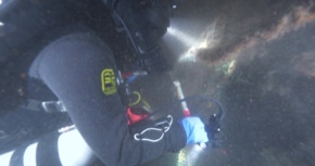 Taucher 2 filmt (ideal ist eine Helmkamera) und unterstützt beim schneiden und Hebesack füllen.